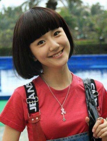 就算发型很老气,看上去也很少女范儿。圆脸,大眼。
