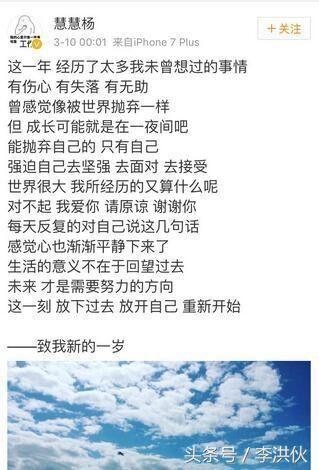 而杨慧貌似过得并不顺利。前几天,杨慧过生日,发微博回顾自己过去的一年。这个因为稀里糊涂被卷进王宝强离婚案而被迫出名的女人,选择在生日当天通过微博发声:曾感觉被世界抛弃,并激励自己,放下过去,放开自己,重新开始。希望她能幸福吧!
