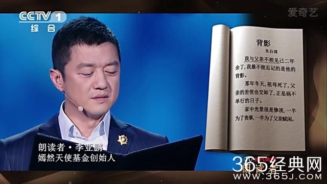 随后,李亚鹏谈到了自己的父亲,说与父亲的最后一面也是在火车站,与朱自清的《背影》有着同样的场景,同样的心境。并以此文献给自己的父亲。