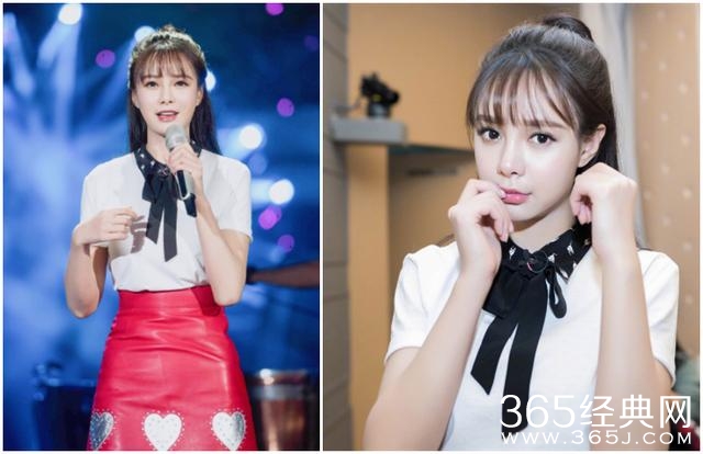 最近沈梦辰发到微博上的一组照片,服装便是来自miumiu,蝴蝶结上衣加上爱心短裙,搭配她一直以来的空气刘海和丸子头,每一个元素都是减龄的。