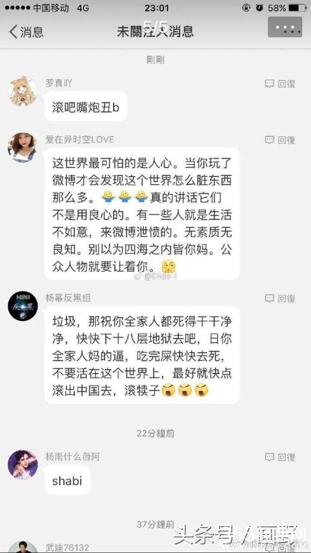 脑残粉们赞完郑爽之后再跑到被郑爽骂的网友的微博里继续跟着骂,而且骂的也是惨目忍睹,网友的正常生活都受到影响了。什么“祝全家死的干干净净”“四海之内皆你妈”“下十八层地狱”等等。