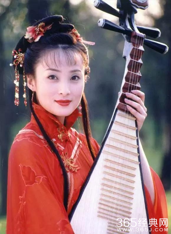 一袭红衣,臂环琵琶。回眸一笑百媚生。