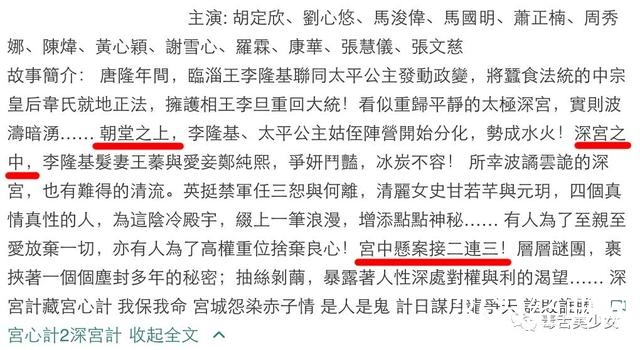 宫斗结合破案,“烂大街”的题材,不容易出彩。看编剧吧,希望能让好人坏人都聪明点。