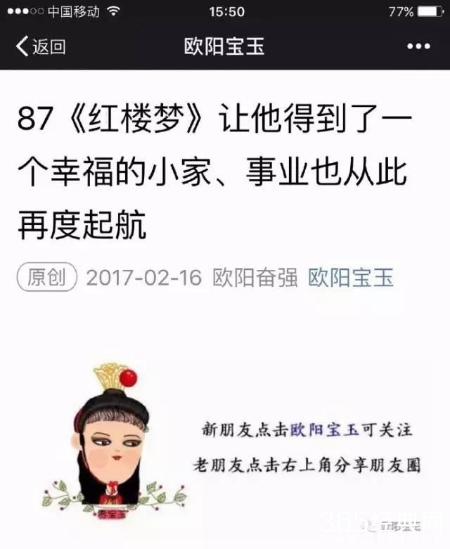 欧阳奋强不仅会利用资源助力女儿的事业发展,这位新媒体老司机还在运营个人的微信订阅号,分享有关87版《红楼梦》剧里剧外的点点滴滴,这岂不是要抢咱小编们的饭碗吗?