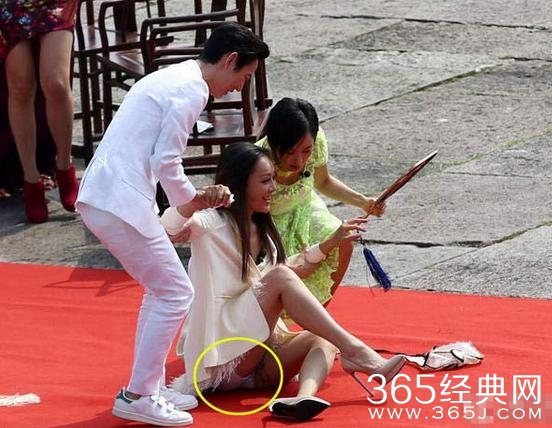 马伊琍摔倒,男嘉宾本是好心将她扶起,却帮了倒忙,让马伊琍意外走光。
