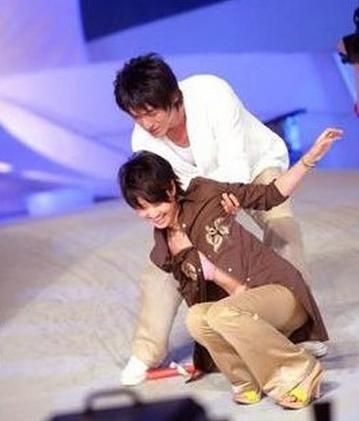 宁静这跤摔的,何炅朱茵两个人都拉不起来,还不小心露底裤。