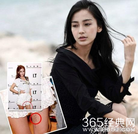 Angelababy的第一处纹身在脚部,是一朵绽放的花,这个纹身是为自己纹的,希望自己能闯出一片天地;第二处纹身是在腰部,是一个十字,当时Angelababy正与前男友陈伟霆热恋,那是两人的情侣纹身;直到遇到了黄晓明,Angelababy才找到属于自己的白马王子,于是便在大腿内侧纹了一串神秘的字符。