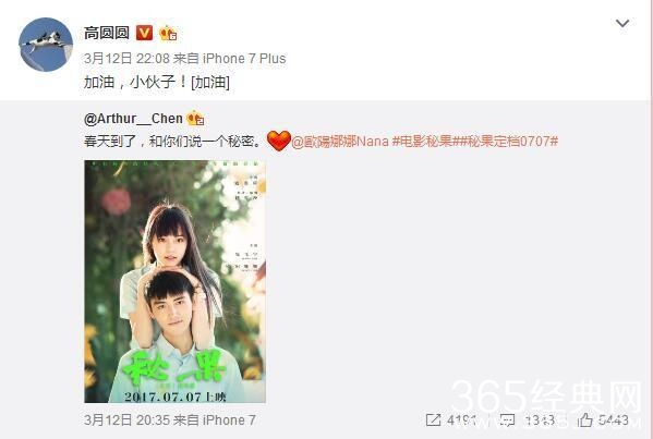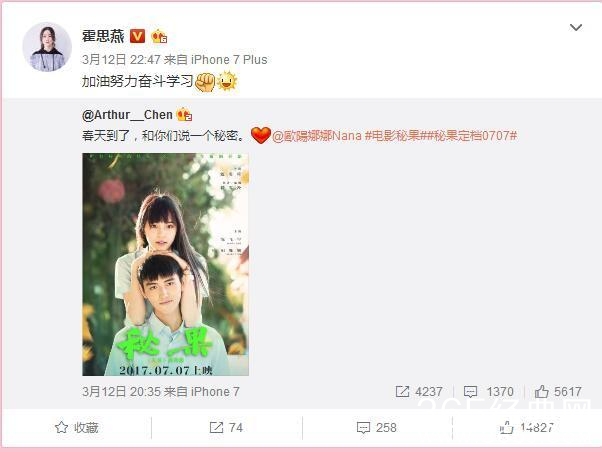 今年,由原著作者饶雪漫担任编剧、连奕琦导演的电影《秘果》正式发布官宣海报并确认《秘果》定档2017年7月7日。陈飞宇和欧阳娜娜身穿校服并露出青涩甜蜜的笑容,期待正当17岁00后的他们演绎17岁的故事。左耳未说完的秘密,由秘果继续开始。7月7日,一起继续青春。