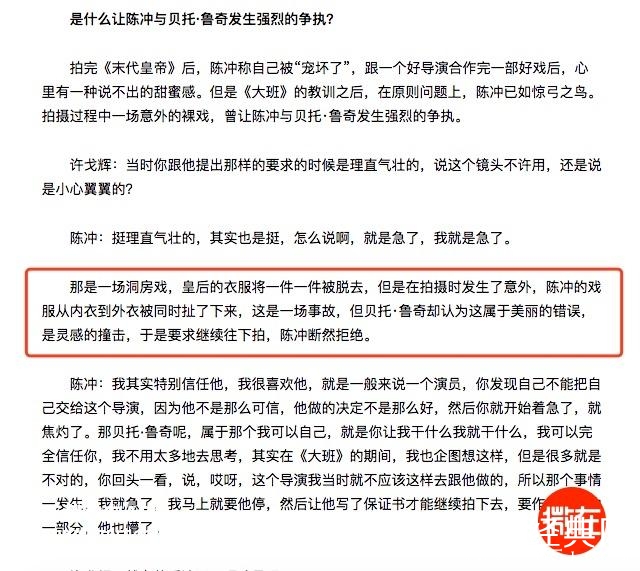 1988 年,贝托鲁奇在中国拍摄《末代皇帝》的时候,也发生过一个插曲,这次事件的主角是中国女演员陈冲。
