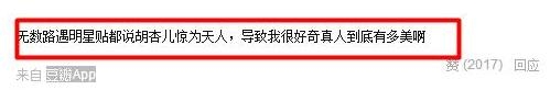 很多网友也表示:无数路遇明星贴都说胡杏儿惊为天人,导致我很好奇真人到底有多美