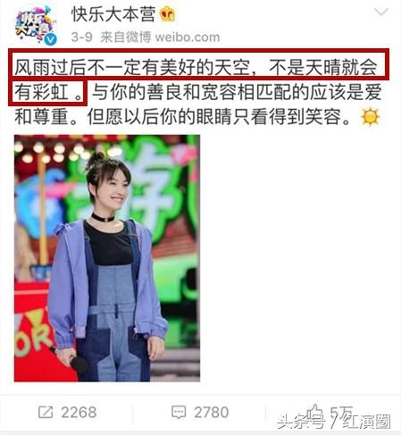 还有3.8妇女节《快乐大本营》官微为她发声的事儿,因为澄清声明的事儿,李易峰粉丝和吴昕粉丝掐了起来。《快乐大本营》随即发了一条微博安慰自家姑娘。