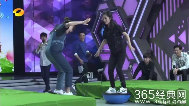 在平衡球这个环节,谢娜吴昕对战。吴昕是出了名的平衡感不好,所以开始前海涛和何老师都在扶着她。
