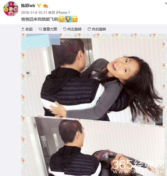 都说女儿是爸爸前世的情人,陈婷在发这张父女合影的时候,配上这么一句:情人节快乐!