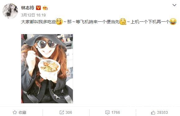 直到昨天,林志玲发文说:“大家都叫我多吃些~那~等飞机时来一个便当先~上机一个下机再一个”。她还配了张照片,照片上的林志玲带着墨镜,却笑的很开心。