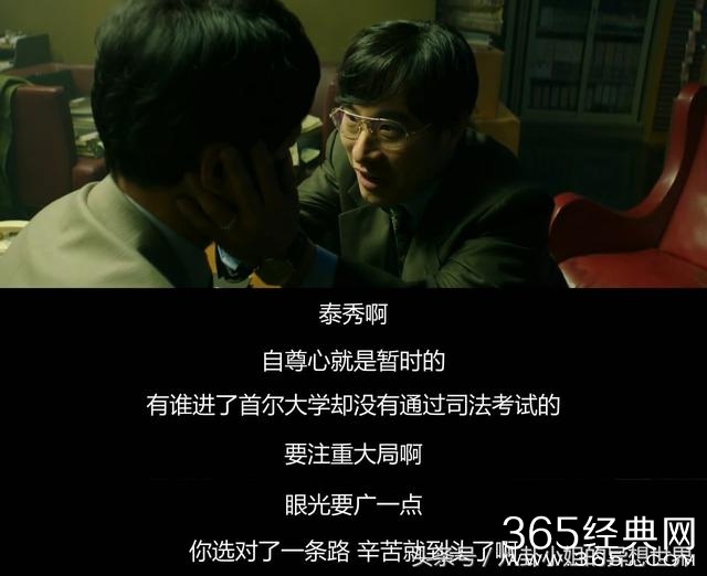 他向男主许诺只要能将这件事压下去,就会举荐男主,他说:“谁不是进了首尔大学通过司法考试的?你选对了一条路,辛苦就到头了啊!”潜台词就是:你不要觉得自己很了不起,大家起点都一样,跟对人才是王道啊!