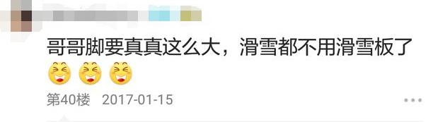 是不是很大!大家都在调侃,还有人说:哥哥脚要是真真这么大,滑雪都不用滑雪板了。