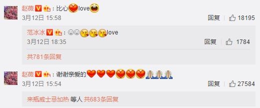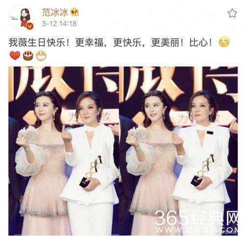 范冰冰和赵薇的感情一直都有点扑所迷离,但是范冰冰还是发了微博表示祝福,语言有点官方。