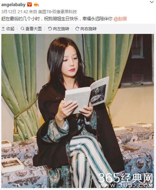 时间晚了不说,重点照片也是赵薇穿睡衣读书的照片,并没有放出和赵薇的合照。