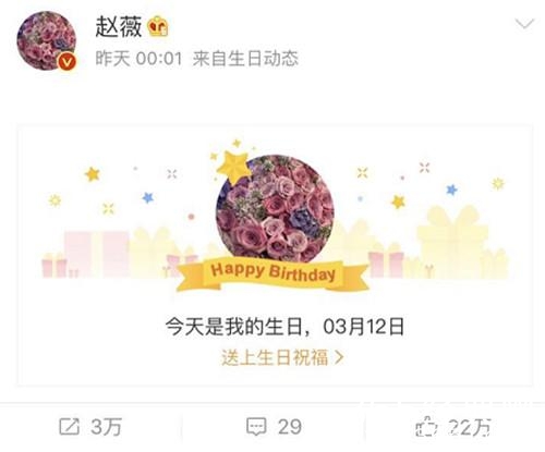 赵薇这次的生日没有大办,但是不少好友都在微博上表达了生日祝福,毕竟样子要做出来给人看。