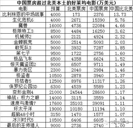 比如去年,就有七部好莱坞进口片的中国票房超过北美本土票房。其中《比利-林恩的中场战事》中国票房是北美的近14倍,《魔兽》中国票房是北美本土的近5倍,可谓天壤之别。微影数据研究院给这类电影取了一个名字,叫“中仓影片”。