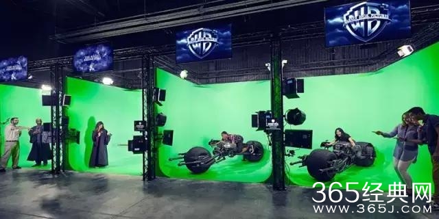 在巨大的绿幕中,你可以化身蝙蝠侠或猫女骑上蝙蝠摩托,体验一把在哥谭市飙车的快感。