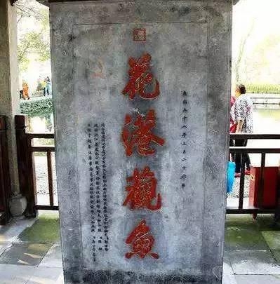 典故:“花港观鱼”碑,也是康熙皇帝的御笔,“鱼”字少一点是“有意写错”。