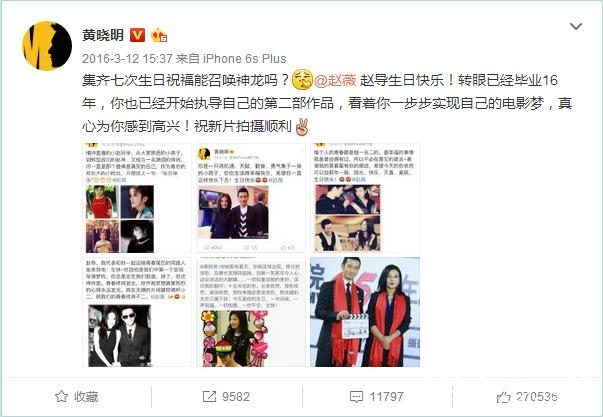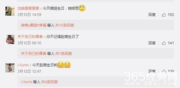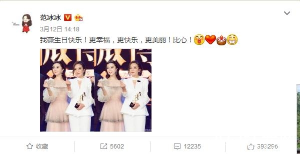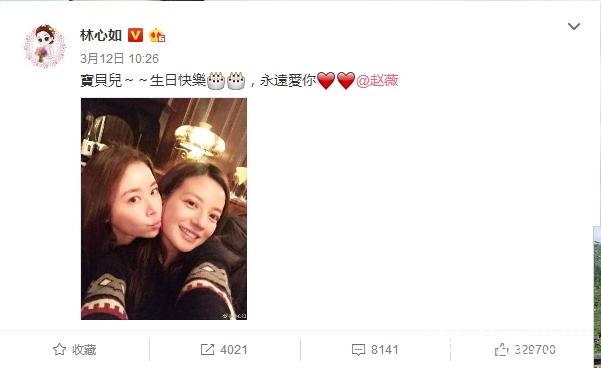 3月12日是赵薇的生日,林心如、范冰冰等好友均在微博送上了祝福。