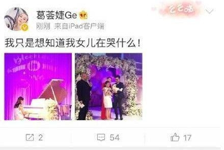 然而,看到如此温馨的场景,汪峰前妻葛荟婕不干了,她怒发微博质问章子怡:我就想知道我女儿为什么哭?