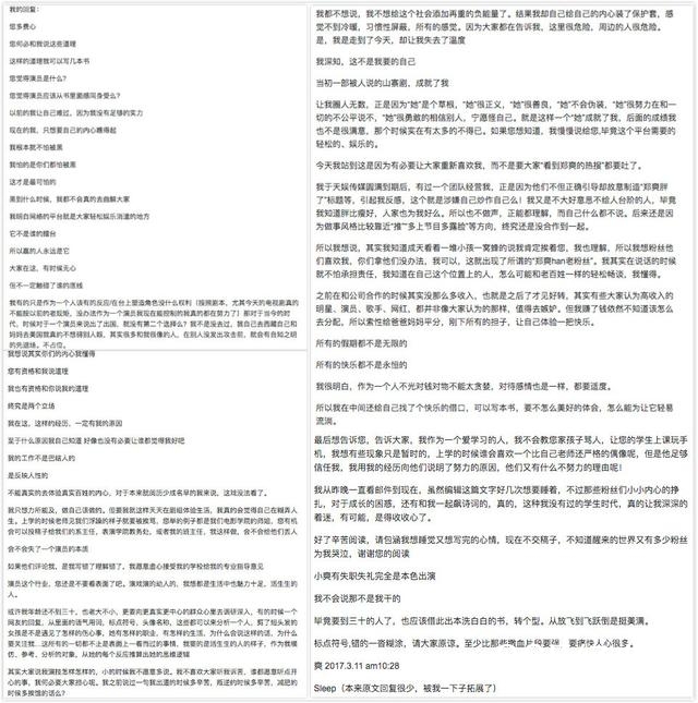 不仅如此,郑爽还把粉丝来信po到网上,发了大段长文回应。