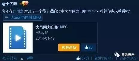 2014年3月,小沈阳的微博也突然出现一条在某网站上下载了一部视频的消息,从视频的标题看,疑似大尺度片段。