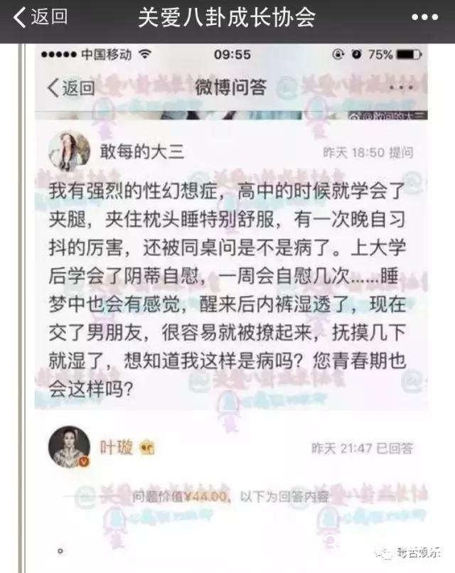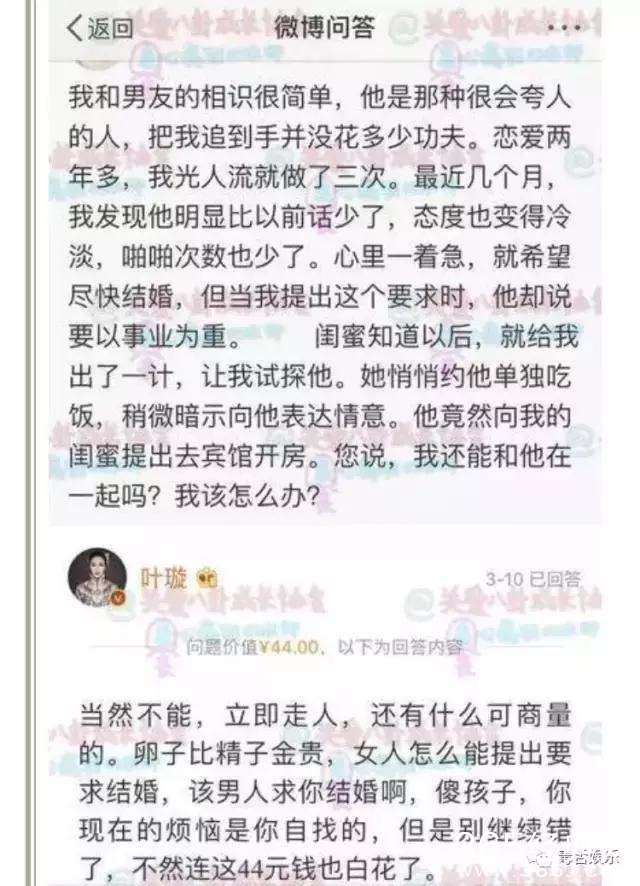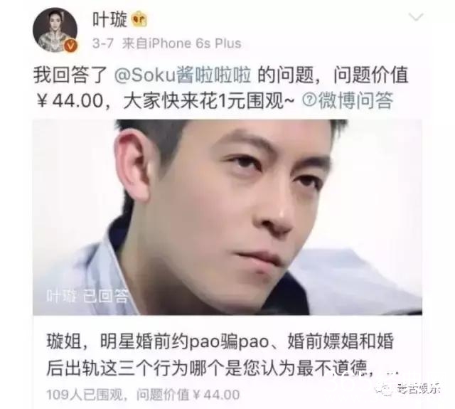 还有叶璇,被八卦号扒出回答并且围观了一些不得了的内容——
