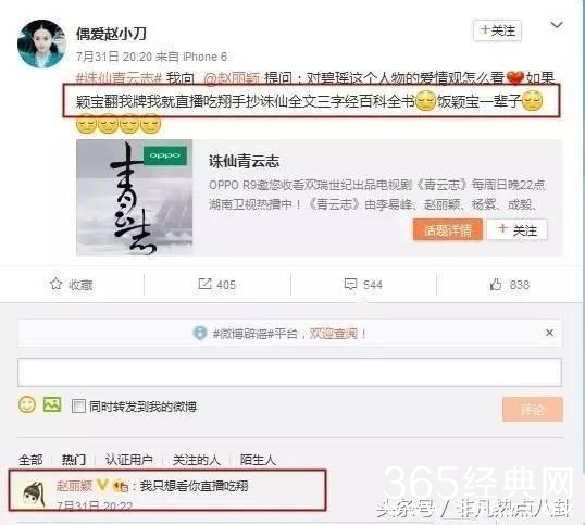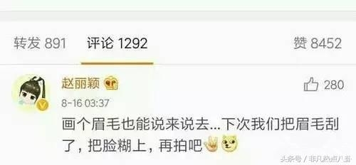 更有著名的回复网友吃翔事件,当时网友说如果赵丽颖翻他牌子就直播吃翔,结果赵丽颖在评论中直接说:我只想看你吃翔。。。。。