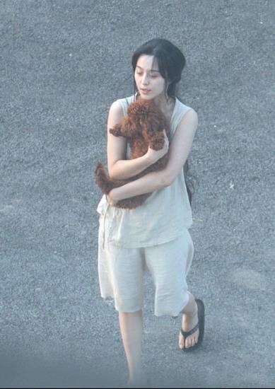 女神冰冰不论是在舞台上还是在荧幕中,都是一副“高不可攀”的女神模样~这种私下的样子真的蛮少见的~冰冰未施粉黛,怀里抱着狗狗,身穿亚麻衣服,头发随意的扎起~