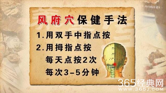 中医有“六淫”之说,也就是六邪。这当中,以风为首,说风为百病之长。所以,中医对风是非常注意的。在长期的摸索当中,人们发现,在人体当中有很多地方很容易遭受风的袭击,所以将其命名为“风”。在这些风穴当中,尤以风府为最。风是指风邪;而府,我们知道在过去是指衙门的意思,风府穴就是统领风穴的衙门。在人体当中风邪侵袭人体,首先找的就是风穴的衙门,所以古人说风府,受风要处也。按摩此穴道对于治疗多种颈部疾病、头部疾病都很有疗效,是人体督脉上重要的穴道之一。