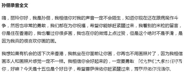 今天就有一件事被刷屏,就是孙俪用语音唤醒了一位正在昏迷状态的粉丝。据了解,这位粉丝叫“丽玲”,非常非常喜欢孙俪,但不幸的是因为一场意外陷入昏迷状态。