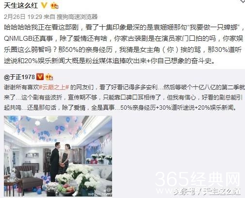 然后,看下来发现,我知道的娱乐圈,可能跟于正心里那个娱乐圈,不是同一个娱乐圈。