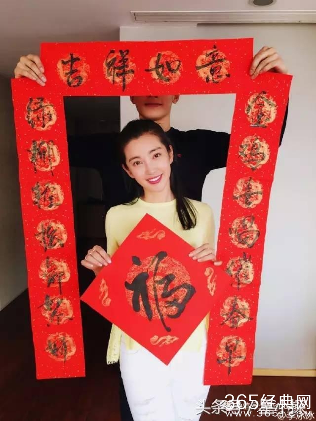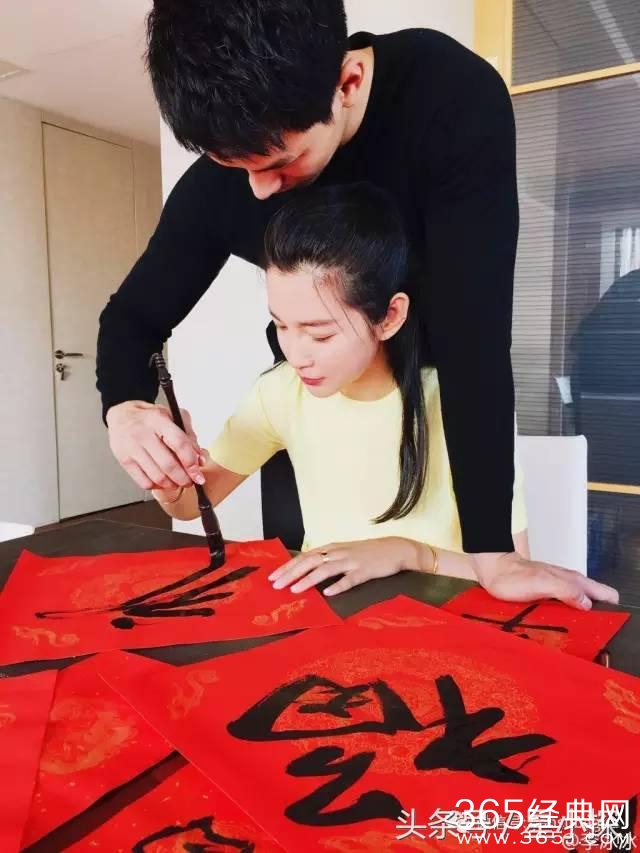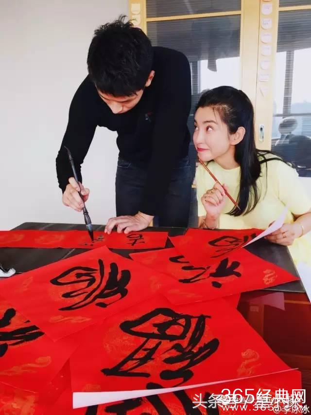 过年写春联,李冰冰偷瞄男友的眼神好可爱啊。