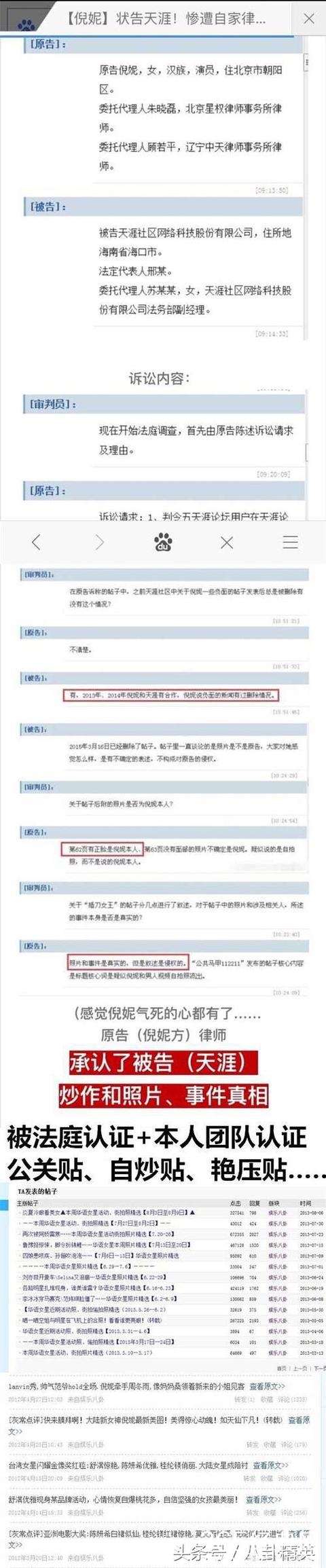 和天涯打官司在法庭承认在论坛有水军并承认揉奶照片是本人,且在微博被爆料当初为了压下自己的揉奶照片,第二天花钱找人爆料同为谋女郎的董洁出轨照片转移视线,时间契合。
