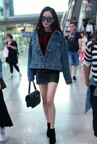 将机场当走秀场的幂幂,在机场上可是常常翻出新品呢!看杨幂内穿包臀裙,外搭牛仔开衫,性感中不乏帅气爆棚,手提包+黑色鞋+炫酷墨镜与整个服饰搭配得宛若天成,将气质烘托得脱俗出众!