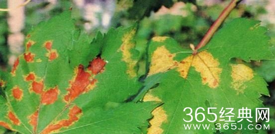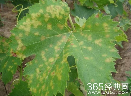 葡萄霜霉病中期危害叶片症状