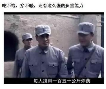 每次看到这,真的无力吐槽编剧的脑洞,神马鬼?一人一百五十公斤?什么概念?还有八百里开外一枪射中鬼子的台词也是够经典。。。无聊的抗日神剧啊!