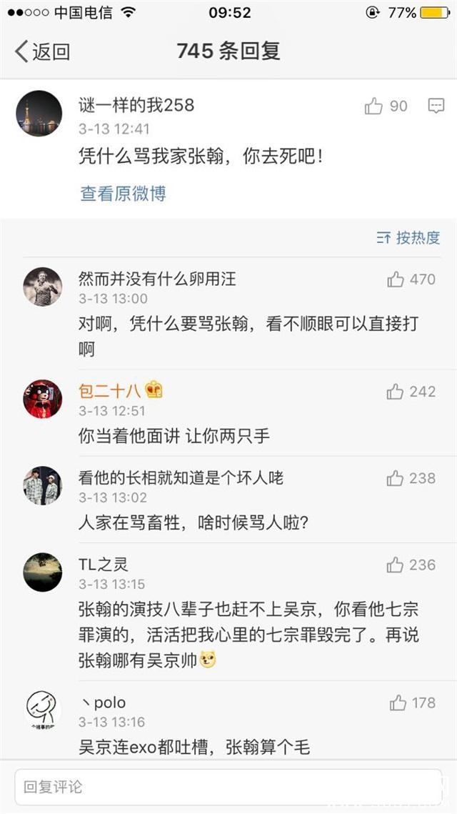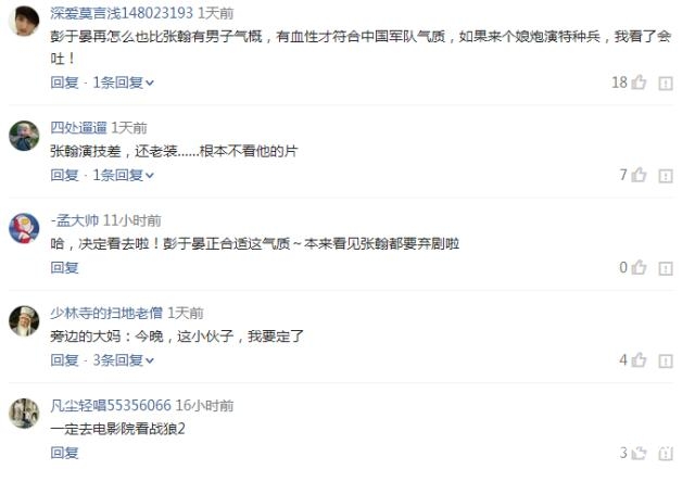 就在前几天吴京在微博更新了一下微博,就引发了粉丝大战,有吴京的,有彭于晏和张翰的,在吴京微博评论席都振振有词,骂声不断。