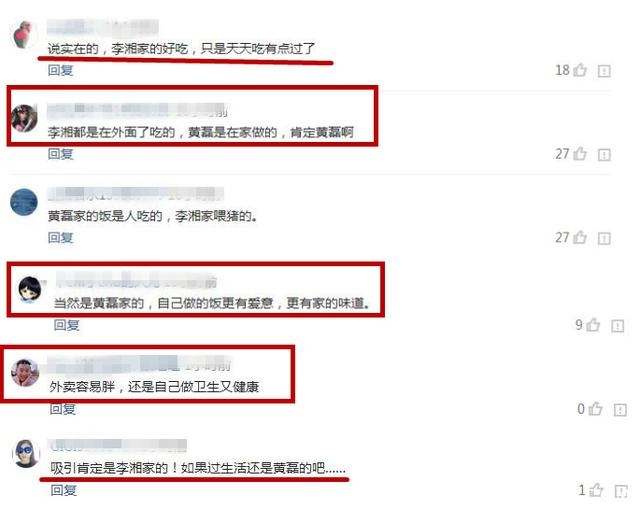 对于李湘和黄磊家的伙食,有人调查询问网友喜欢谁家的伙食。有网友称:“说实在的,李湘家的好吃,只是天天吃有点过了”,“李湘都是在外面吃的,黄磊是在家做的,肯定黄磊啊!”“外卖容易胖,还是自己做健康又卫生”。