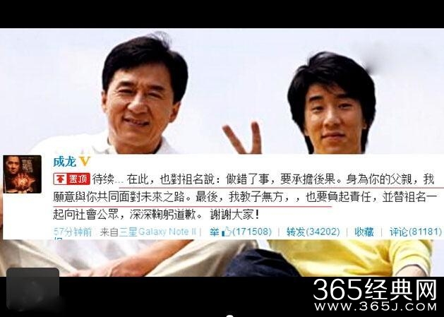 也正是因为这句话,房祖名一直过着“富二代”“二世祖”的豪华生活,出道有老爸老妈铺路,出门也有豪车相送,日子过得甚是“滋润”。只是,没想到最后“滋润”到容留他人吸毒,闹得成龙还得腆着老脸为儿子道歉,承认自己“教子无方”。