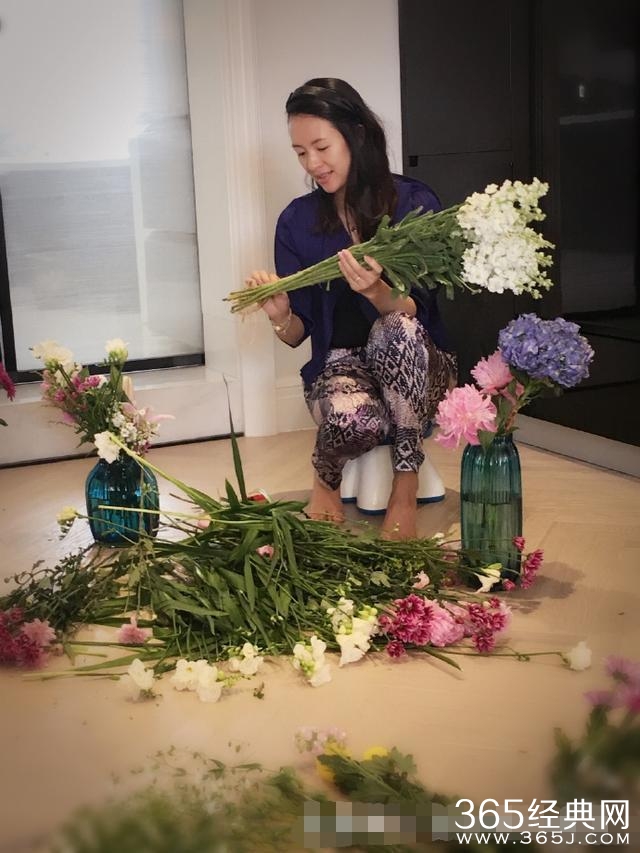 章子怡在家没事插插花,休闲养性,好安逸,不过从其背景,我们可以看出其家居装修是简单大气之感!