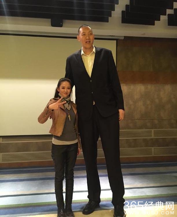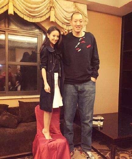 而我们有1米64大长腿的新疆美女佟丽娅为了合影,只能踮脚站在椅子上,才能勉强顶到孙明明的肩膀!真是尴尬。