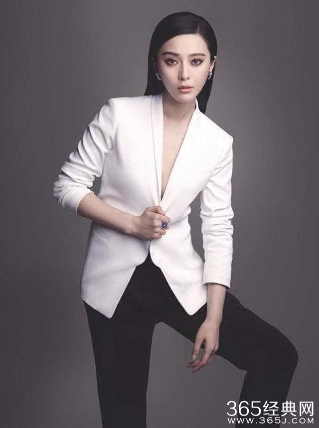 范爷不愧是范爷穿西装妥妥的。V领的设计使得范爷干练中又释放性感的魅力!标准的瓜子脸有着耳饰的搭配更显立体感!有棱有角的西服,显出范爷窈窕有致的身线!
