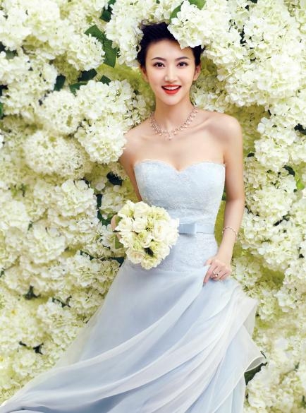 景甜身穿灰色蕾丝裙,以花做背景,手摇曳着裙摆,精致的妆容配上标志性笑容,景甜就像花仙子般唯美动人!
