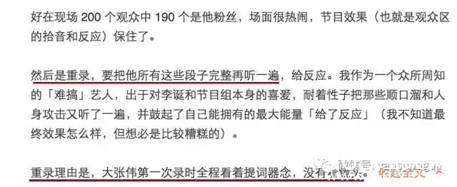 而重录的理由就是:大张伟第一次录制的时候全程看提词器,没有看镜头。