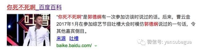 现在“你死不死啊”已经有了专门的百度百科,里面就记载了曹云金在《吐槽大会》上的表现,由此可见是非常经典了。
